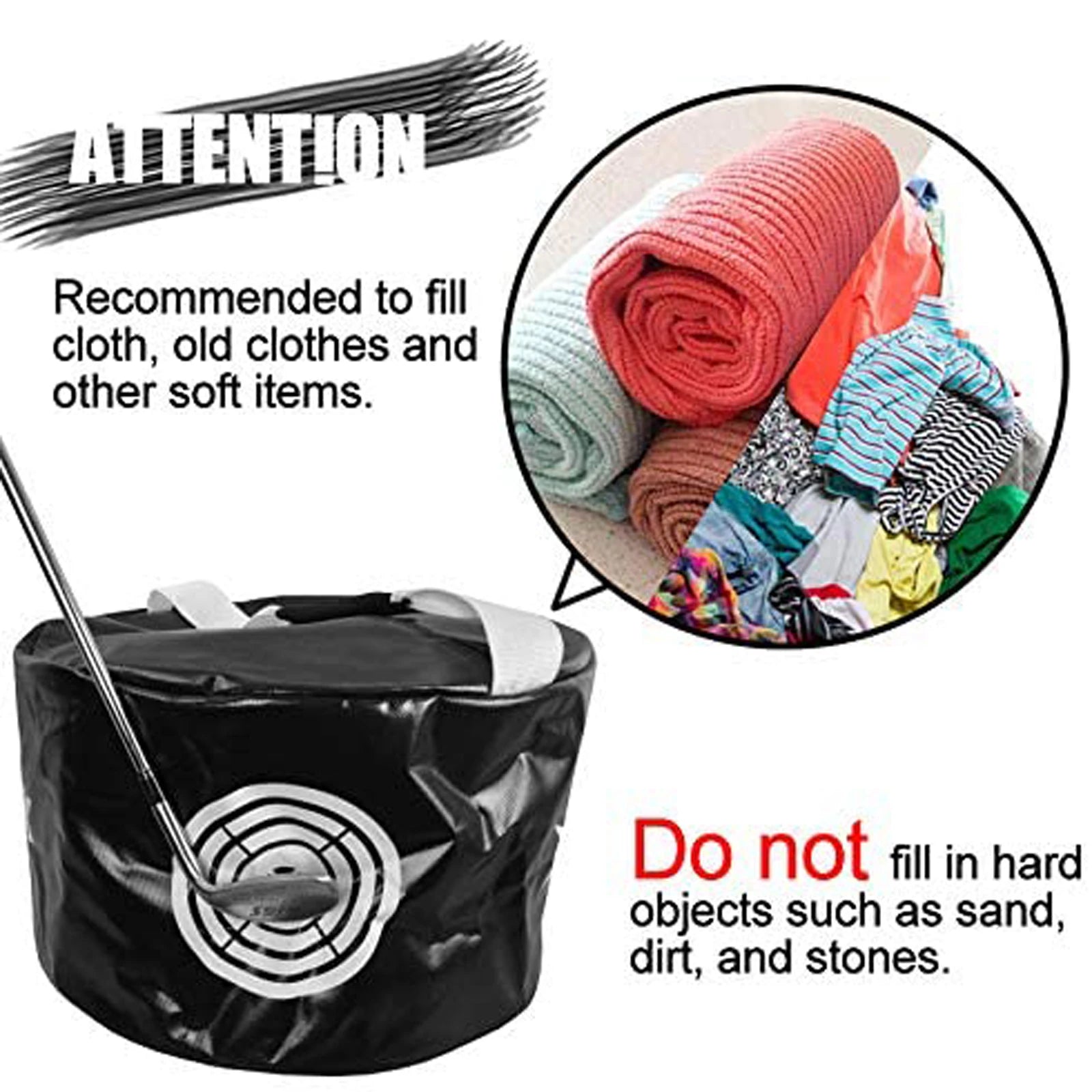 Introducing the Impact Smash Bag, an innovative tool that can help you enhance your club head speed and swing power. Simply add old towels or clothes to the bag, and practice your swing.